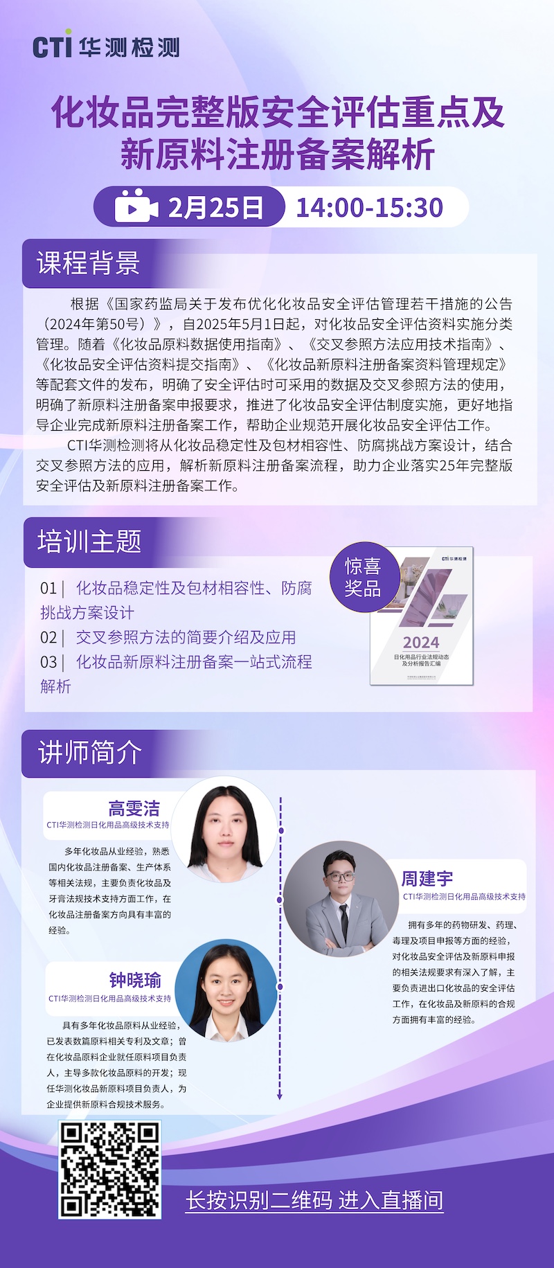 ¡¡¡¡CTI9888À˹ά¼Ó˹¼ì²â½«´Ó»¯×±Æ·ÎȹÌÐÔ¼°°ü²ÄÏàÈÝÐÔ¡¢·À¸¯ÌôÕ½¼Æ»®Éè¼Æ£¬ÍŽύ֯²ÎÕÕÒªÁìµÄÓ¦Óã¬ÆÊÎöÐÂÖÊÁÏ×¢²á±¸°¸Á÷³Ì£¬ÖúÁ¦ÆóÒµÂäʵ25ÄêÍêÕû°æÇå¾²ÆÀ¹À¼°ÐÂÖÊÁÏ×¢²á±¸°¸ÊÂÇé¡£