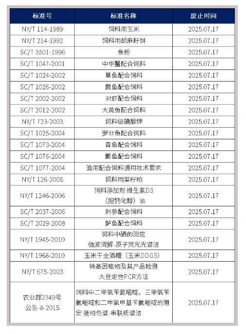 ÒÔÏÂ21¸öËÇÁÏÁìÓòÏà¹Ø±ê×¼½«ÓÚ7ÔÂ17ÈÕ·ÏÖ¹£¡·ÏÖ¹±ê×¼ÏêÇéÈçÏ£º