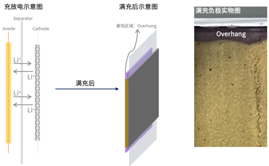 ¡¡¡¡ÎªÁ˾¡¿ÉÄÜʹ½Ï¶àµÄï®Àë×ÓǶÈëµ½¸º¼«ÖÊÁÏÖУ¬Í¨³£¸º¼«¼«Æ¬»á±ÈÕý¼«¼«Æ¬³ß´ç´óһЩ£¬Õý¸º¼«Î´ÖغϵÄÇøÓò³ÆÖ®ÎªOverhangÇøÓò¡£