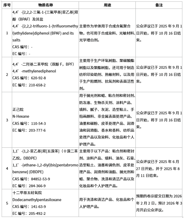 2025Äê9ÔÂ1ÈÕ£¬Å·ÖÞ»¯Ñ§Æ·¹ÜÀí¾Ö(ECHA)Ðû²¼¶Ô3ÏîSVHCÒâÏòÎïÖÊÕö¿ª¹«ÖÚÆÀÒ飬¹«ÖÚÆÀÒ齫ÓÚ2025Äê10ÔÂ16ÈÕ¿¢Ê£¬ÔÚ´Ëʱ´ú¸÷ÀûÒæÏà¹Ø·½¾ù¿ÉÏòECHAÌá½»ÆÀÒéÒâ¼û¡£¸ÃÏîÎïÖÊÈçͨ¹ýÆÀÒ齫±»¼ÓÈëSVHCÕýʽÇåµ¥¡£×èÖ¹2025Äê9ÔÂ1ÈÕ£¬SVHCÕýʽÎïÖÊÇåµ¥°üÀ¨33Åú250Ï´¦ÓÚ´ý¾öÒé״̬µÄÎïÖÊΪ1ÏSVHCÆÀÒéÎïÖÊ4ÏÆäÖÐÊ®äå¶þ±½ÒÒÍéÒÑÓÚ2025Äê6ÔÂ27ÈÕ¿ªÆô¹«ÖÚÆÀÒ飩£¬SVHCÒâÏòÎïÖÊ£¨ÉÐ먦Æô¹«ÖÚÆÀÒ飩1Ïî¡£½¨ÒéÆóҵʵʱ¹Ø×¢SVHCÏà¹ØÎïÖʵĶ¯Ì¬ÐÅÏ¢¡£