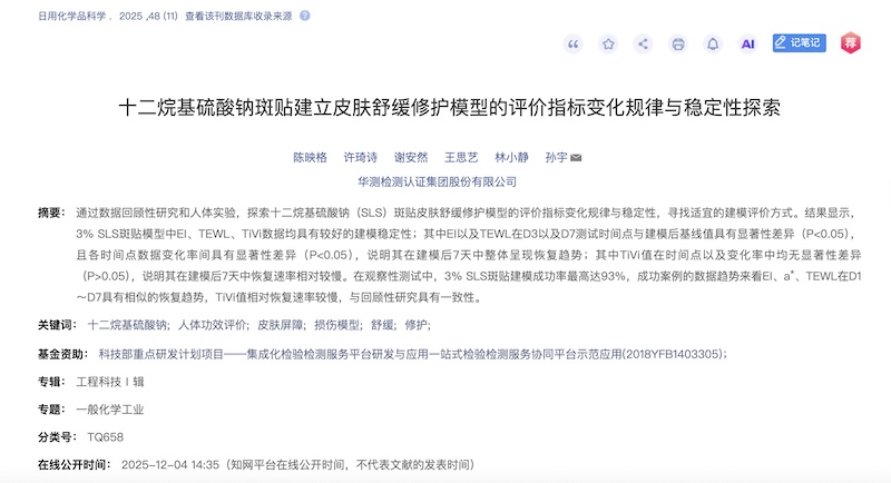 ¡¡¡¡¿ËÈÕ£¬CTI9888À˹ά¼Ó˹¼ì²â»¯×±Æ·¹¦Ð§ÊµÑéÊÒÔÚ¡¶ÈÕÓû¯Ñ§Æ·¿ÆÑ§¡·½ÒÏþ×îÐÂÑо¿Ð§¹û¡¶Ê®¶þÍé»ùÁòËáÄÆ°ßÌù½¨ÉèÆ¤·ôÊæ»ºÐÞ»¤Ä£×ӵįÀ¼ÛÖ¸±êת±ä¼ÍÂÉÓëÎȹÌÐÔ̽Ë÷¡·¡£¸ÃÑо¿²»µ«ÑéÖ¤ÁËÄ£×ÓµÄÓÐÓÃÐÔ£¬¸üÉîÈëÕ¹ÏÖÁËÆäÊý¾Ý¶¯Ì¬¼ÍÂÉÓëʱ¼ä²î±ðÐÔ£¬ÎªÐÐÒµÌṩÁË¿ÆÑ§¡¢ÑϽ÷µÄ½¨Ä£ÓëÆÀ¼ÛÖ¸ÄÏ¡£