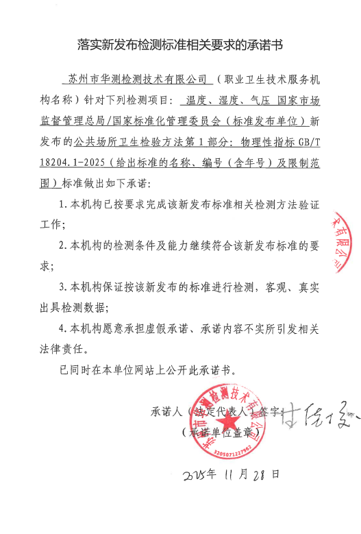 ¹«Ê¾ÄÚÈÝ£ºËÕÖÝÊÐ9888À˹ά¼Ó˹¼ì²âÊÖÒÕÓÐÏÞ¹«Ë¾ÂäʵÐÂÐû²¼¼ì²â±ê×¼Ïà¹ØÒªÇóµÄÔÊÐíÊé-£¨¹«¹²³¡ºÏÎÀÉúÄ¥Á·ÒªÁìµÚ1²¿·Ö£ºÎïÀíÐÔÖ¸±êGB/T18204.1-2025£©